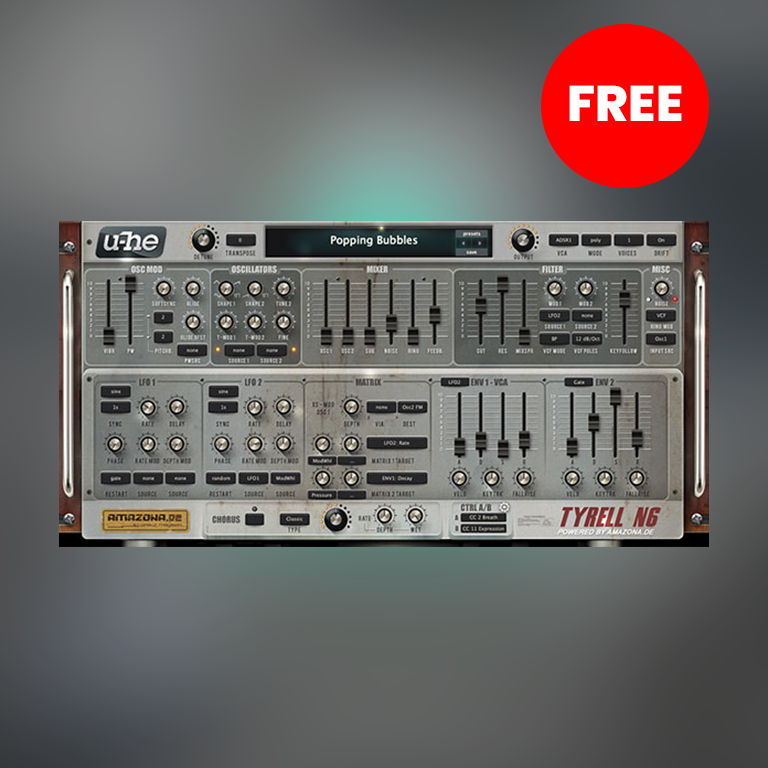 TyrellN6 is a free virtual-analog synthesizer by u-he. Originally developed from a hardware concept by Amazona, it has become a compact yet powerful synth with intuitive workflow, skinnable/resizable UI, and a modern update in its 2025 beta version. It features dual oscillators, noise, ring modulation, twin filters, modulation matrix, unison, and a rich factory preset library. The 2025 beta adds CLAP support, improved VST3 implementation, native Apple Silicon support, revamped preset browser, microtuning support (MTS-ESP), and enhanced GUI performance.